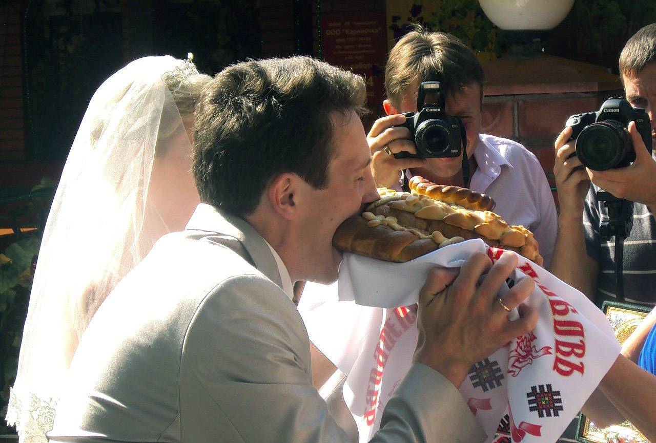Сегодня приметы и обычаи, сопровождающие свадьбу, говорят о том, что кто откусит больший кусок от хлеба, тот и будет главой семьи
