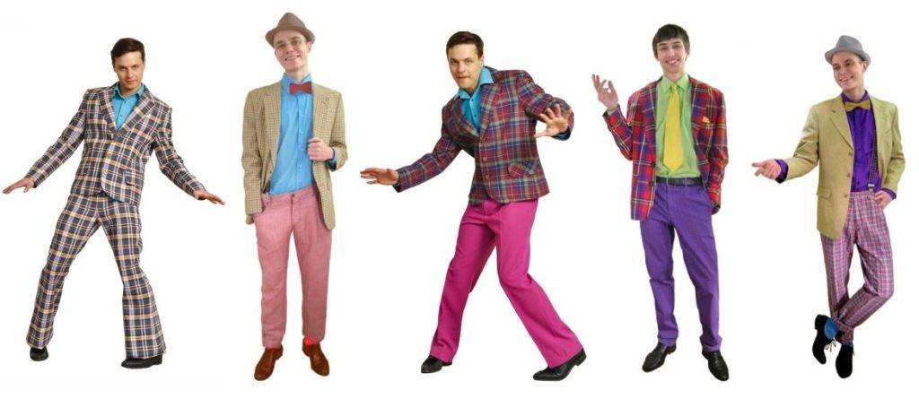 Особое внимание уделяется цветам, поскольку наряд стиляг — это всегда яркий и неординарный праздник, море позитива и улыбок. Костюмы для танца стиляги могут быть как однотонные, так и разноцветные