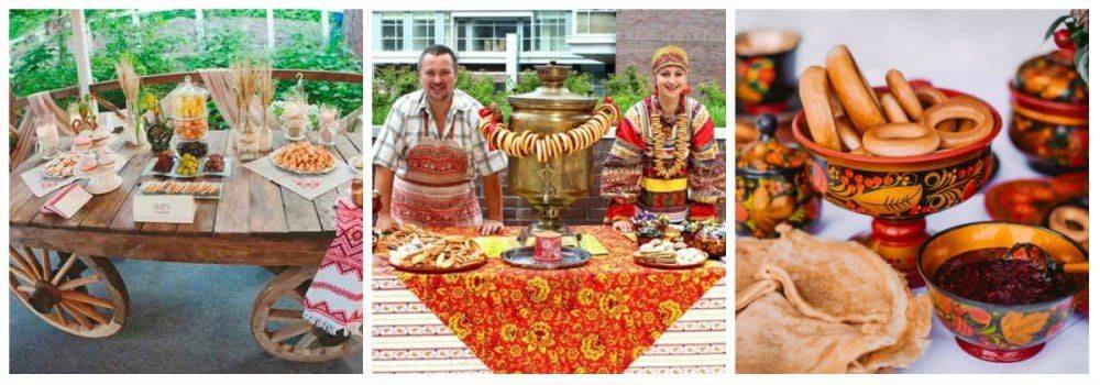 Это праздник для настоящих патриотов, гордящихся своей культурой и традициями, так что ваши гости с удовольствием поучаствуют в подобном мероприятии. Гвоздем программы, конечно, должен стать самовар, а еще глиняная посуда, гжель, хохлома, жестовские подносы, павло-посадские платки, дымковские игрушки, связки баранок, матрешки, лапти, бочонки, кадки и прочий деревянный декор. Из большой картонной коробки можно соорудить настоящую русскую печку и расписать ее в соответствующем стиле.