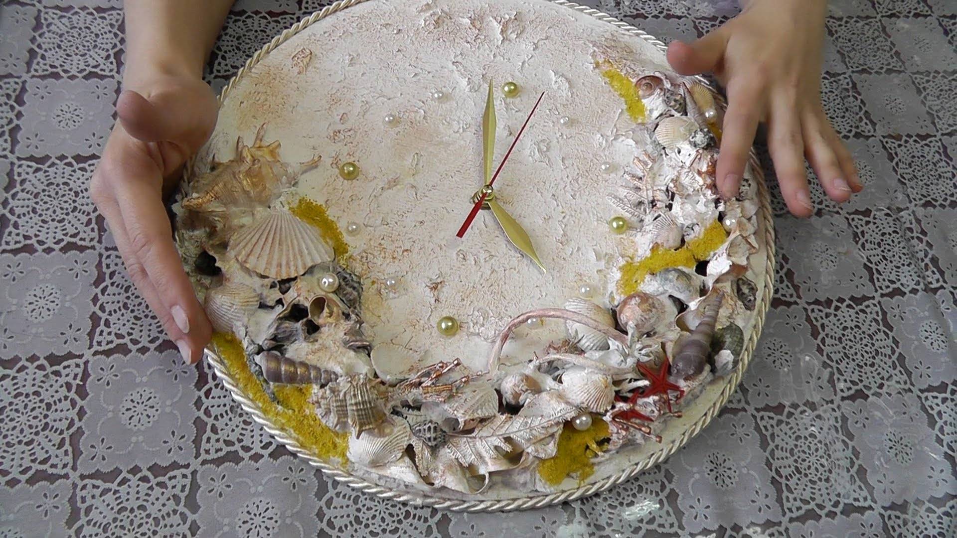 Декупаж часов своими руками предусматривает создание идеально гладкой поверхности, на которую могут быть нанесены разнообразные материалы, например, ракушки, деревянные заготовки, кофейные зерна и т.п., что позволит сделать красивый декупаж часов в объемном варианте.