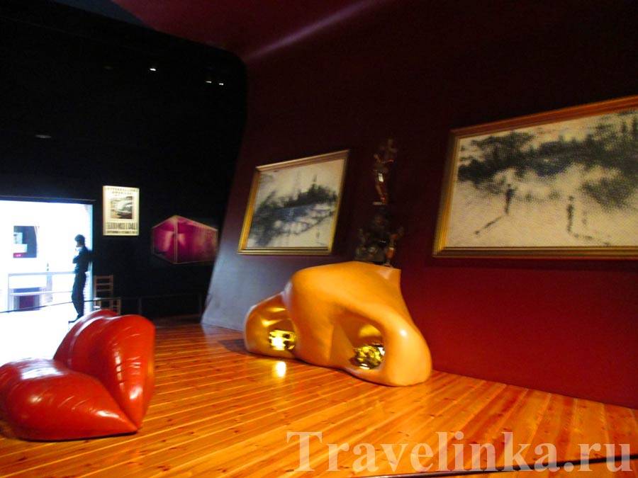 Удивительное впечатление оставляет и комната-лицо, созданная в честь скандальной голливудской кинодивы Мэй Уэс. Тут расположен известный многим диван, имитирующий сомкнутые губы.