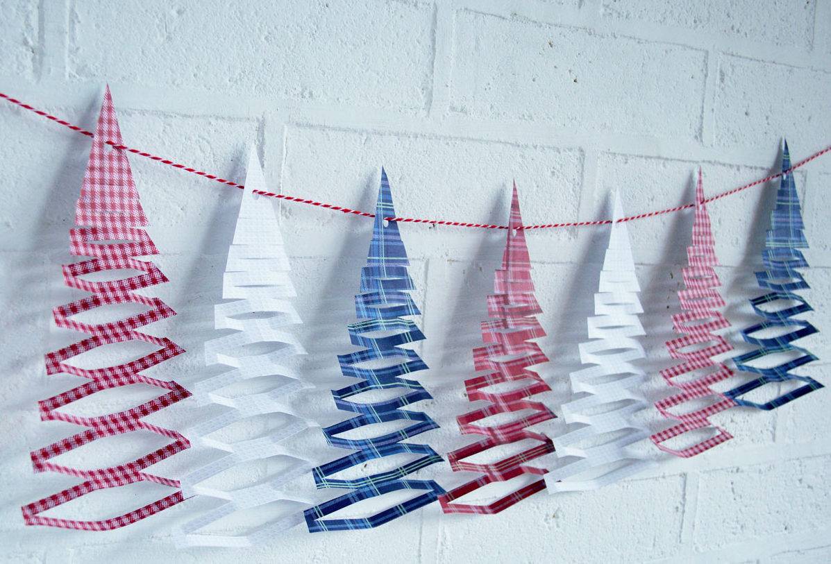 Пожалуй, самым легким способом изготовления гирлянд в домашних условиях считается использование бумаги. Вам необходимо вырезать из нее различные фигурки (елочки, снежинки и т. д.) и соединить их между собой.