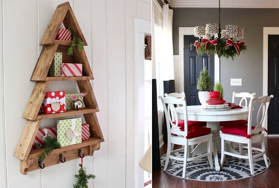 Свечи, украшения, сосновые шишки, ягоды и так далее – они шикарно смотрятся на люстре. Можно создать даже два или три уровня украшений. Такой декор будет к месту в любой комнате. В сети много инструкций, так что если у вас нет мыслей о реализации – то просто найдите их.