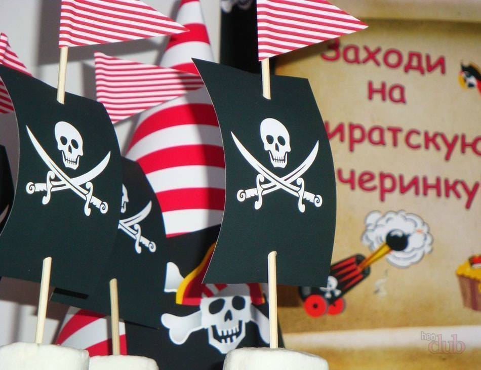 Для начала нужно сделать фотозону из полосатой ткани. Штурвал, якорь и прочие атрибуты станут отличным дополнением. Если у вас дома есть большие цветы в горшках, то обязательно поставьте их в детскую комнату в качестве декора. Ну и, конечно же, подготовьте для именинника и его друзей банданы с черепами, повязки, игрушечные шпаги и другие аксессуары.