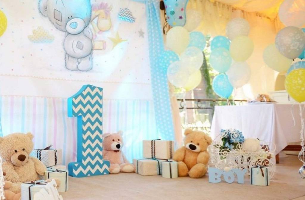 Создать атмосферу торжества в доме, если исполняется 1 год мальчику можно с помощью определенной цветовой гаммы (белые, синие, голубые и зеленые тона) и атрибутов, характерных для жизни юных хулиганов (машинки, мячи, роботы и т. д.)