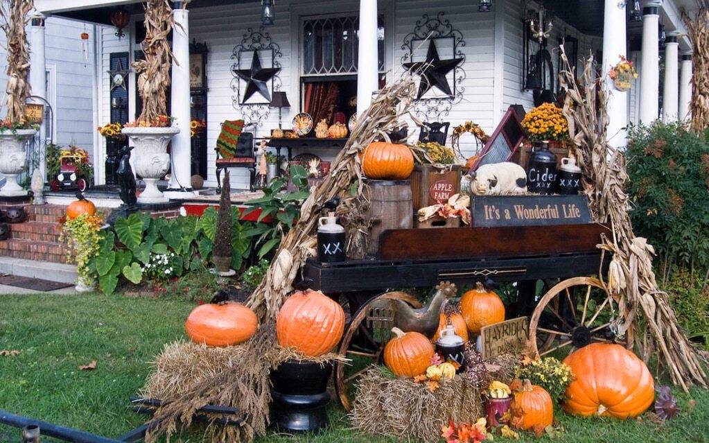 Тыква – настоящая королева Хэллоуина. Появляется повсюду: на салфетках, чашках, гирляндах, украшает дома и сады.