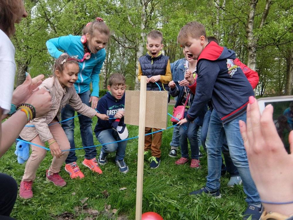 «Самая крепкая пара». Всех гостей нужно разделить по парам. Главное правило – выполнить все команды, но не расцеплять рук. Ведущий в быстром темпе по очереди задаёт команды, к примеру, «подбегите к стулу», «сядьте на ковёр», «найдите красный цвет», «поймайте бабочку» и так далее. Пара, которая расцепила руки, проиграла. Два ребёнка, которые останутся в конце получают главный приз, а остальные участники — более скромные презенты.