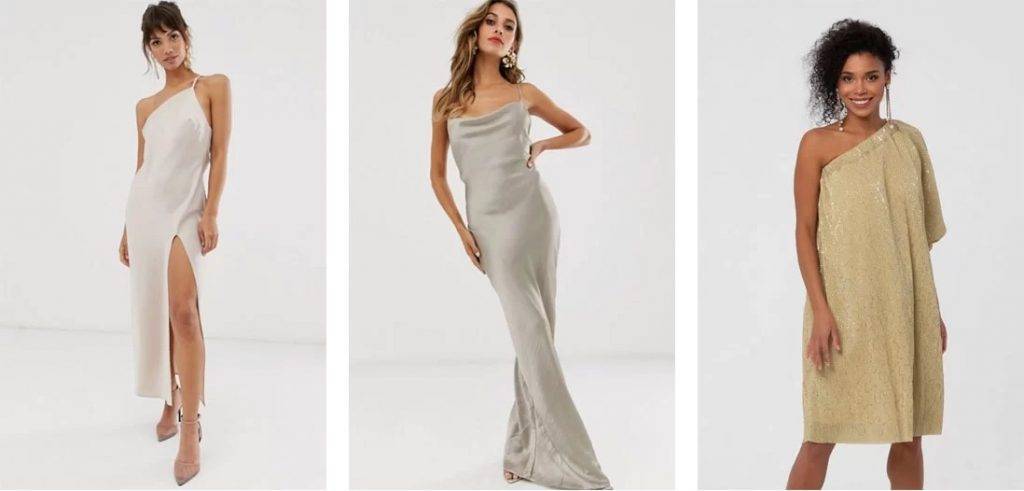 - В тренде ассиметричные силуэты. Красиво смотрится наряд с одним оголенным плечом. Можно выбрать длинное платье в пол серебристого цвета, коктейльный вариант с длиной до колена, маленькое черное платье с блестящими вставками или оригинальным вырезом.