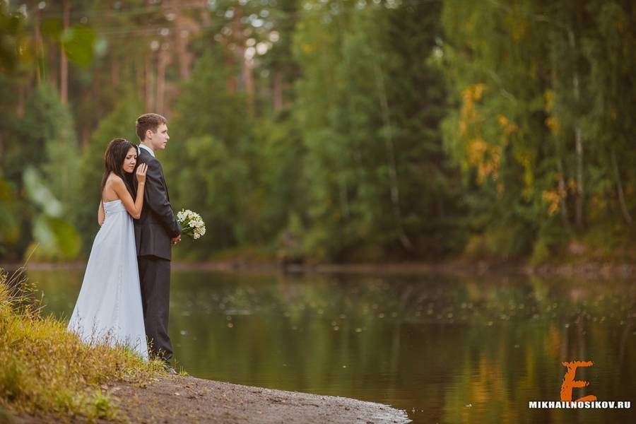 Пейзажи в любое время года смотрятся гораздо живее любых интерьерных изысков, поэтому не стоит пренебрегать природными красотами для создания свадебных фотографий. Если погода и температура воздуха позволяет, можно спланировать прогулку на улице или небольшую поездку за город по живописным местам вместе с гостями.