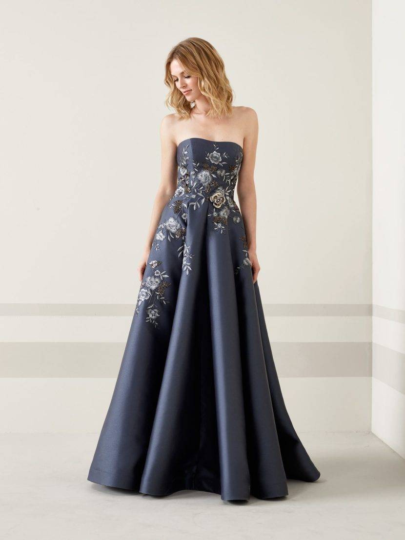 - Вечернее платье в пол без бретелей также актуально. Для вечернего наряда выбирают блестящую металлизированную ткань с драпировкой лифа или с облегающим лифом и пышной юбкой.