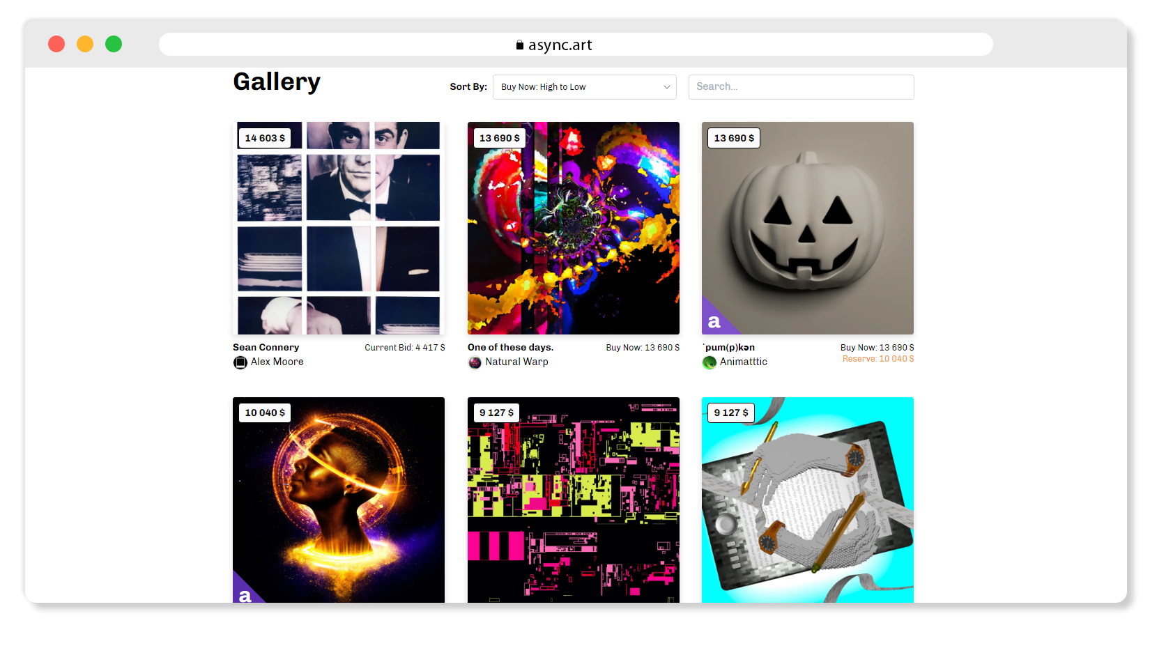 О платформе. Только популярные художники могут выставлять свои работы на Async art. Платформа предназначена для торговли диджитал искусством.