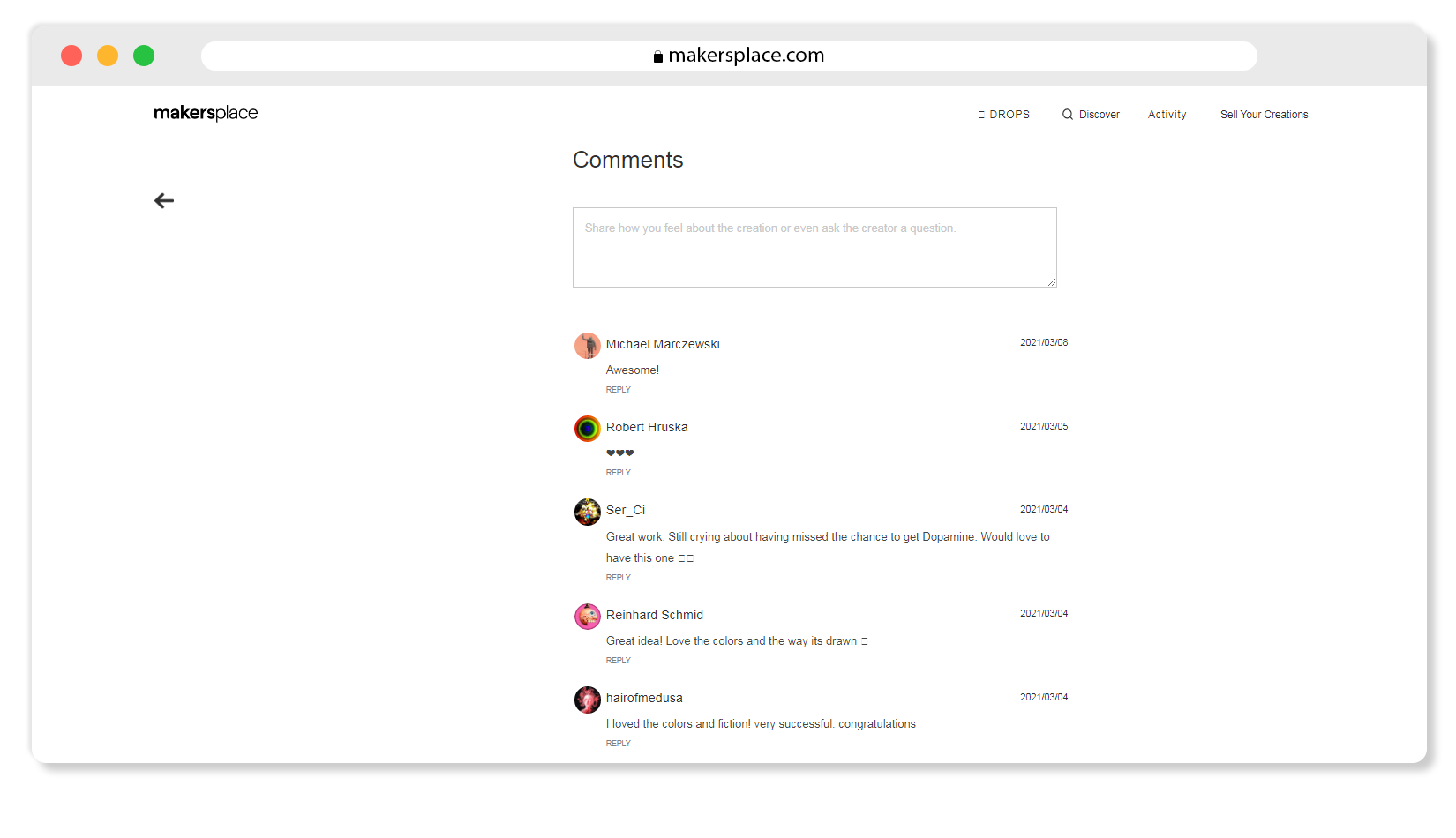 В отличие от других платформ, на Makers place можно оставлять комментарии под работами