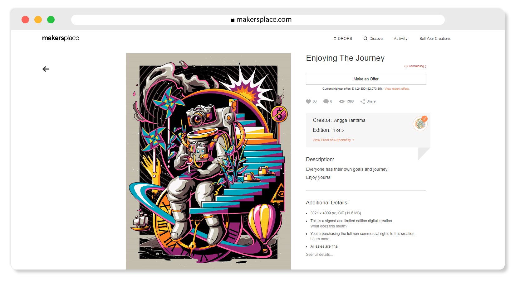 О платформе. Платформа Makers place позволяет художникам продавать свои цифровые работы на широкую аудиторию. Здесь представлены только диджитал арты.