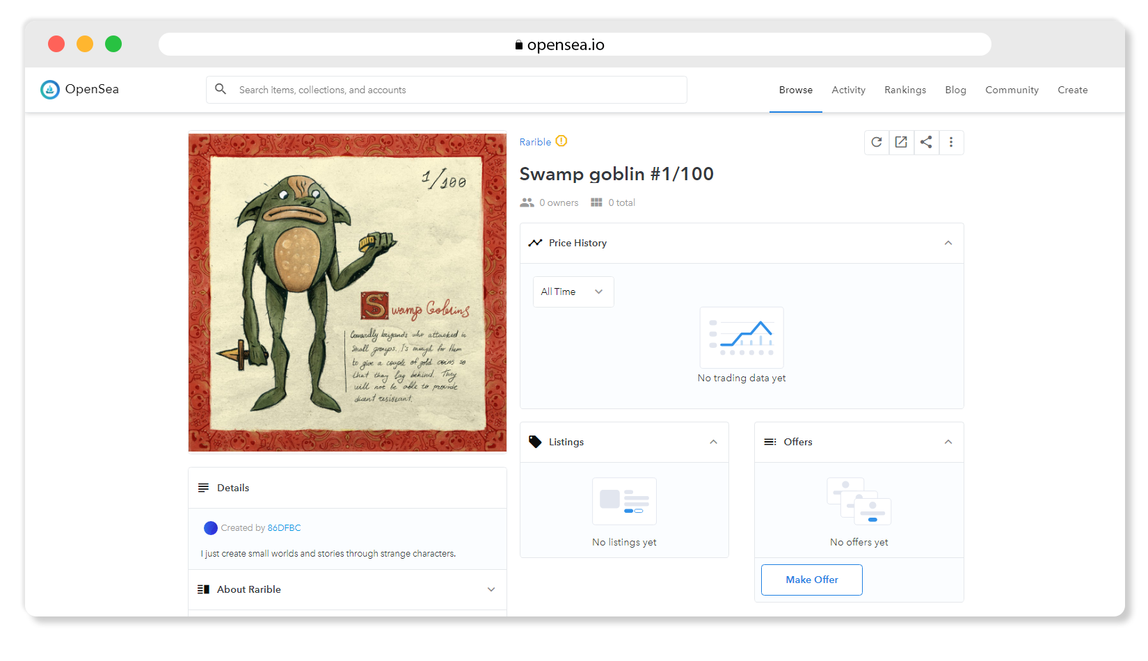 Сколько стоит разместить свою работу. Регистрация на сайте — бесплатно. За размещение каждого нового токена или создание коллекции нужно будет оплачивать комиссию сети Эфириум. Около $30-100 за каждую публикацию.