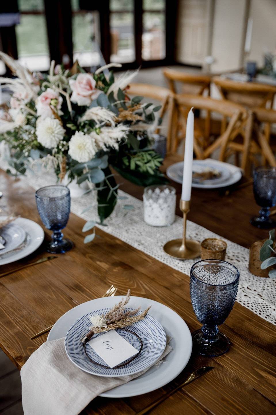 Чтобы не создавать напряжения, перегружая стол одним цветом, важно определиться, какого оттенка сервиз будет использоваться. При голубых тарелках и салатницах достаточно элементов флористики и салфеток, в которых присутствует базовый цвет