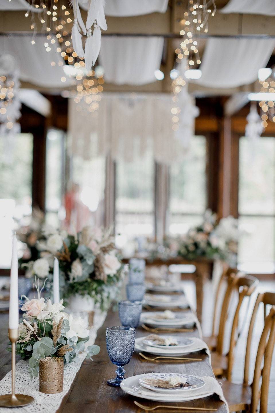 Тогда скатерть и вазы уместны кипенно-белые. При белой посуде достаточно голубой дорожки на столе, вписывающейся в стилистику мероприятия.