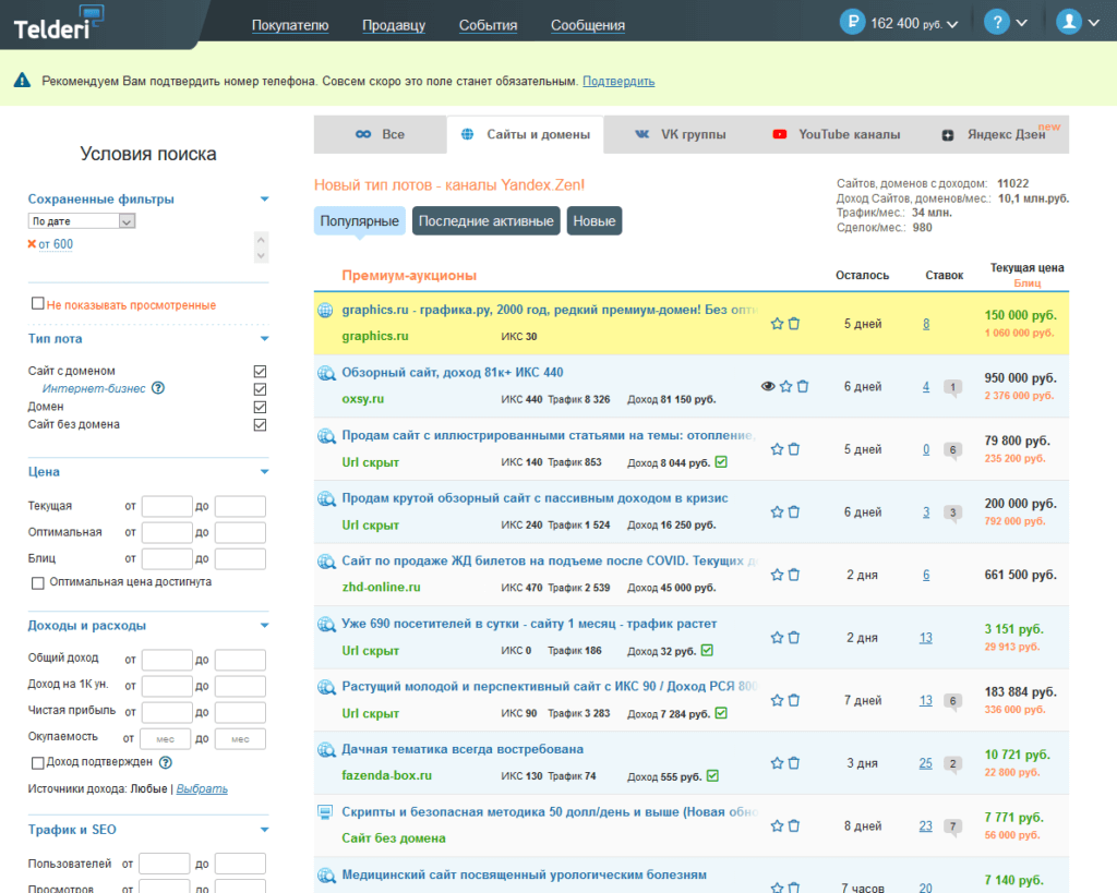 В рунете 99% всех сделок по покупке информационных сайтов проходят на бирже telderi.