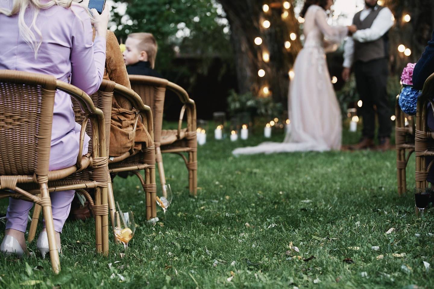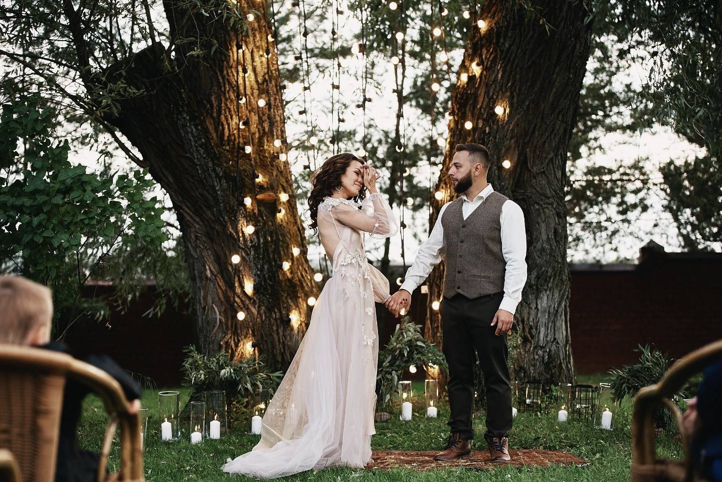 Больше всего мы не хотели пьяных криков «горько», постановочной показухи и обязаловки для гостей. Все, чего нам хотелось в конце свадебного сезона, в наш единственный выходной – это отдохнуть с самыми близкими людьми. Поэтому мы остановились на формате вечеринки: красивая церемония с клятвами, чтобы порадовать родителей, и вечерний ужин под открытым небом.