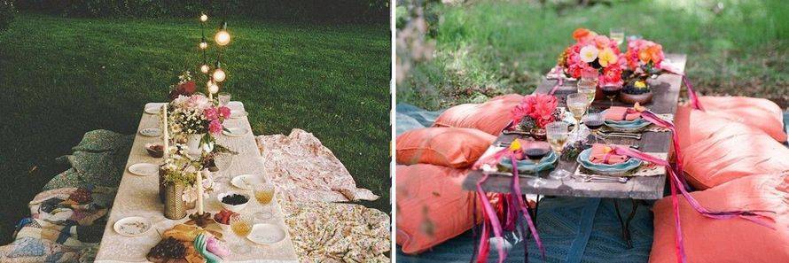 Такой вариант проведения праздничного мероприятия в стиле пикник идеален для свадьбы в джинсах, это прекрасная задумка для современной свадьбы на природе.