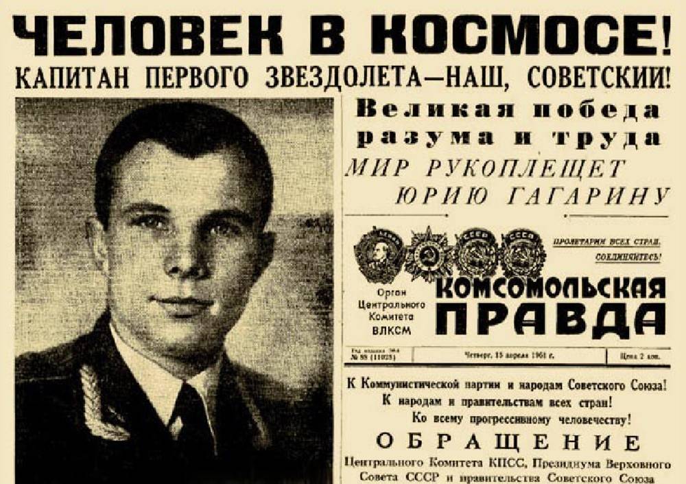 «12 апреля 1961 года в Советском Союзе выведен на орбиту вокруг Земли первый в мире космический корабль-спутник «Восток» с человеком на борту.