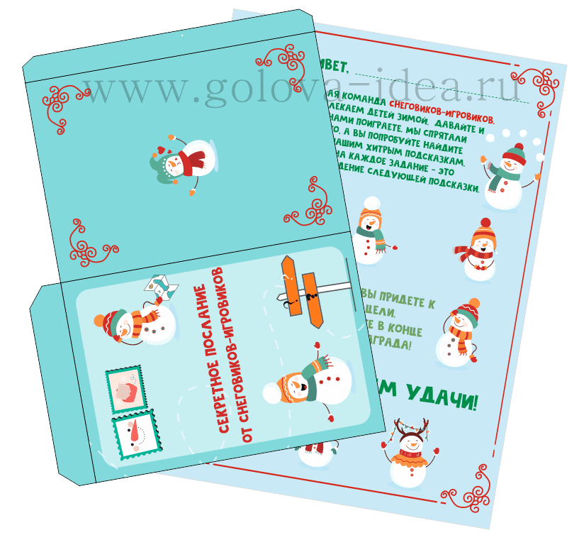 Начинается квест с послания от снеговиков-игровиков, которое Вы можете преподнести любым подходящим мероприятию способом (от простого «лично в руки» до креативного). В инструкции мы предлагаем несколько вариантов.