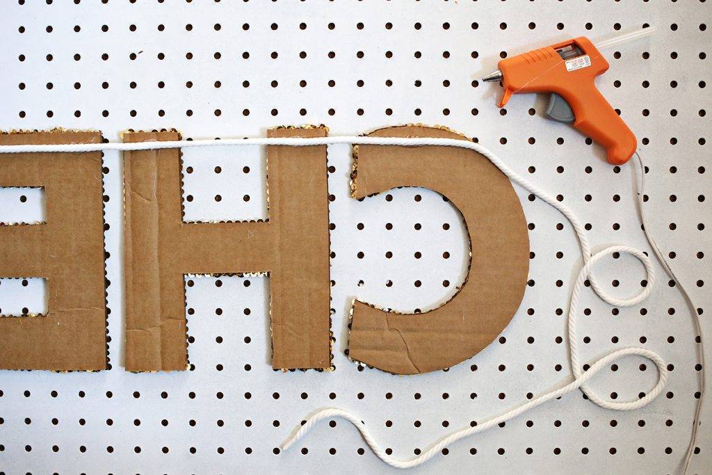 Цепочки – традиционный способ сделать самодельную новогоднюю гирлянду. Вместо бумаги используйте ленту из мешковины. Это позволит повторно использовать гирлянду на долгие годы, ну и согласитесь, мешковина выглядит довольно оригинально, такое себе украшение в фермерском стиле. Шить ничего не надо, просто используйте горячий клей. Используйте усилитель жесткости ткани.