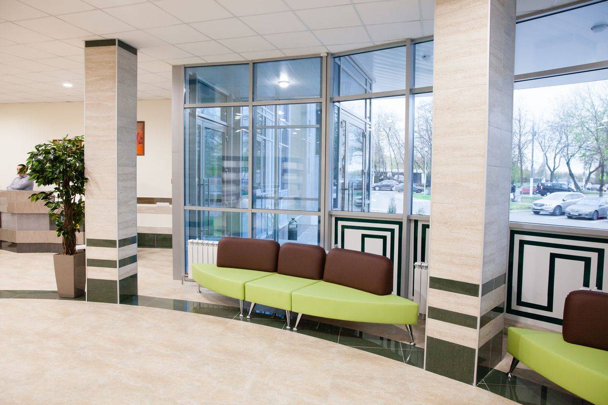 Однако интерьер очень стильный, выполнен по индивидуальному плану. В уютных залах для ожидания стоят удобные диванчики, на стенах висят бра.