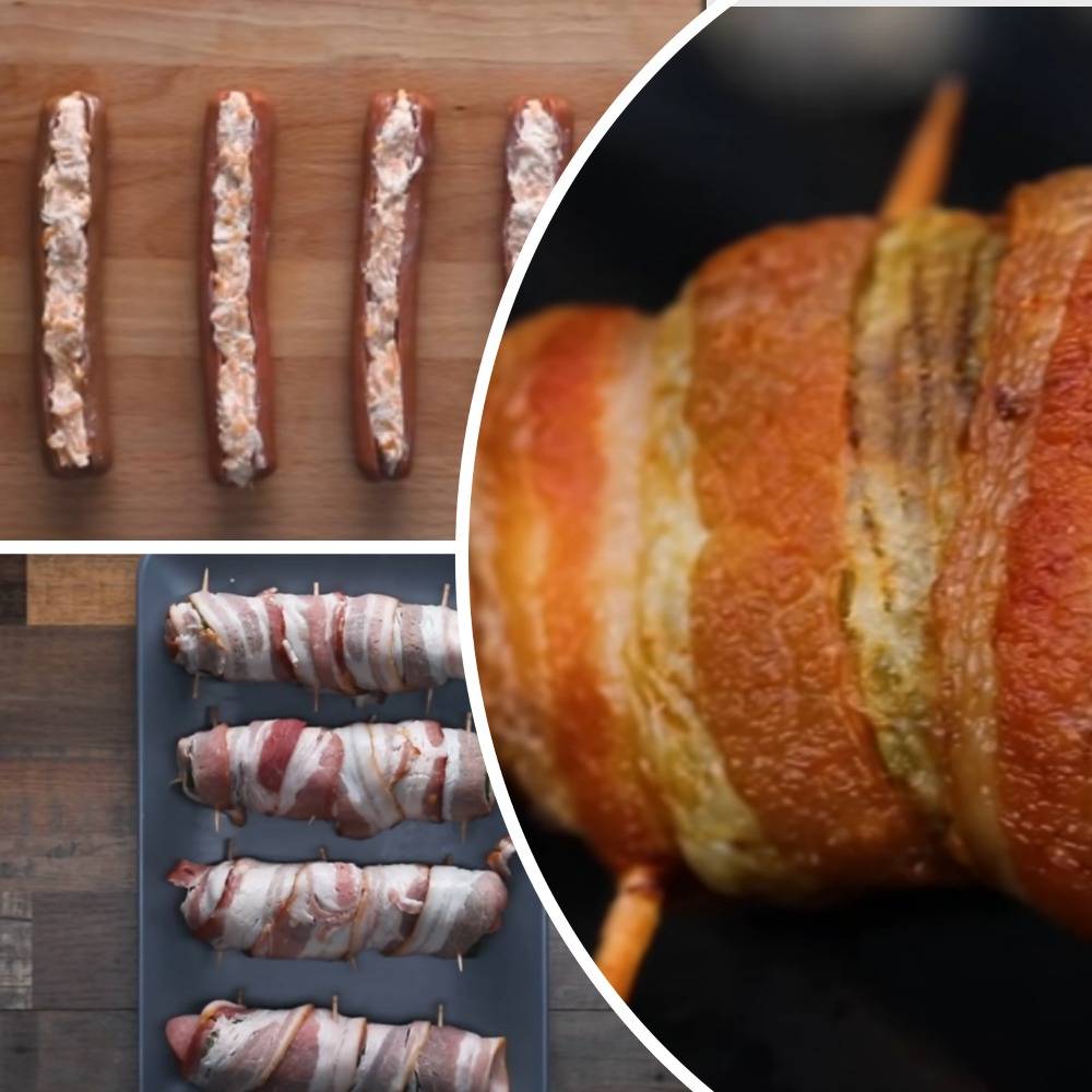 Очень вкусная закуска из сосисок к пиву делается буквально за несколько минут, но правда также быстро съедается. В центре каждой сосиски делают продольный надрез, смазывают его изнутри горчицей или кетчупом и кладут внутрь кусочек сыра. После этого сосиски запекают на мангале, в духовке или микроволновке несколько минут.