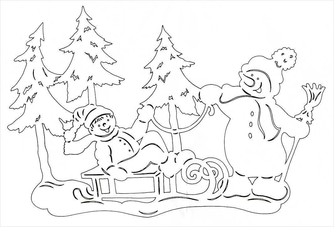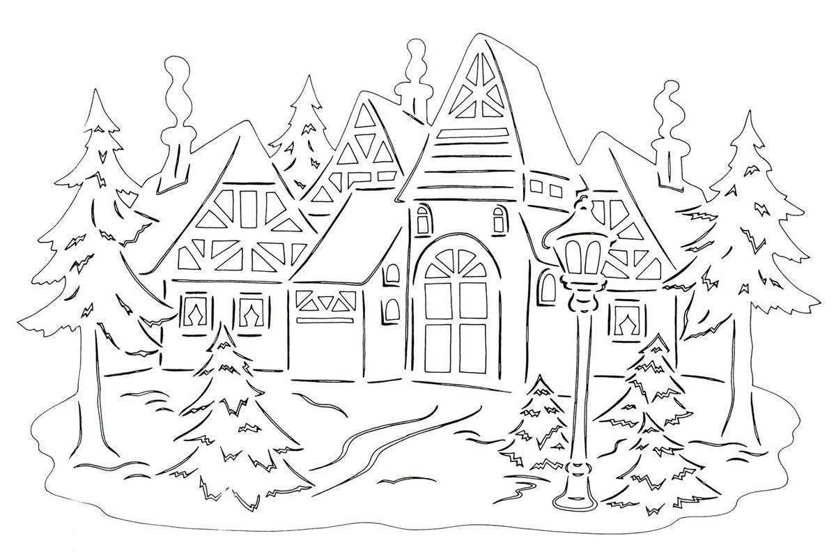 Зимние деревенские пейзажи из бумаги: шаблоны и трафареты для вырезания и наклейки на окно
