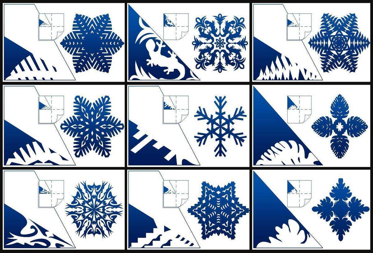 Таким способом можно сделать самые разные по форме, сложности, величине снежинки. А для начала помогут схемы.